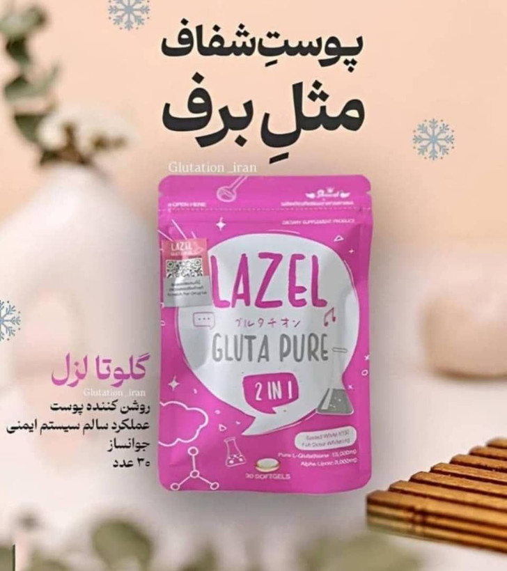 مکمل غذایی Lazel Gluta Pure 2 in 1 برای روشن کننده پوست شامل 30 عدد کپسول ژله ای نرم است. LAZEL Glutathione دارای گلوتاتیون یک ماده محبوب در محصولات زیبایی است که باعث می شود بدن نوع متفاوتی از ملانین تولید کند که اثر روشن کنندگی روی پوست دارد. می توان از آن در سرم ها برای کاهش رنگدانه های پوست و از بین بردن لکه های پیری استفاده کرد.