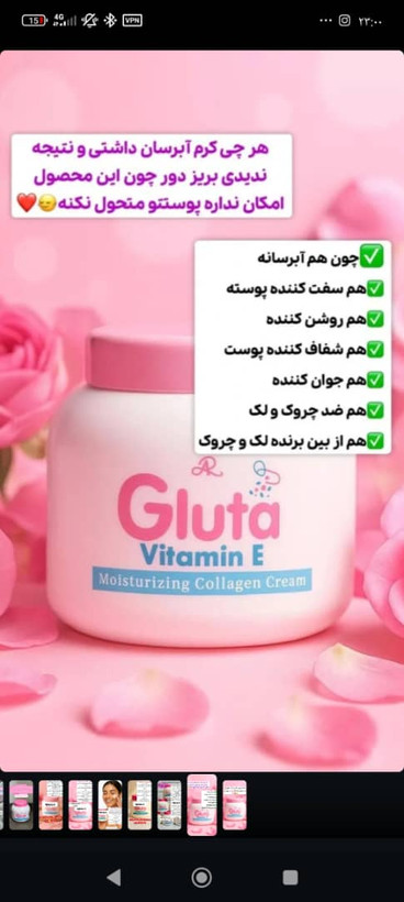 کرم آبرسان سفید کننده حاوی کلاژن گلوتا ویتامین e اورجینال